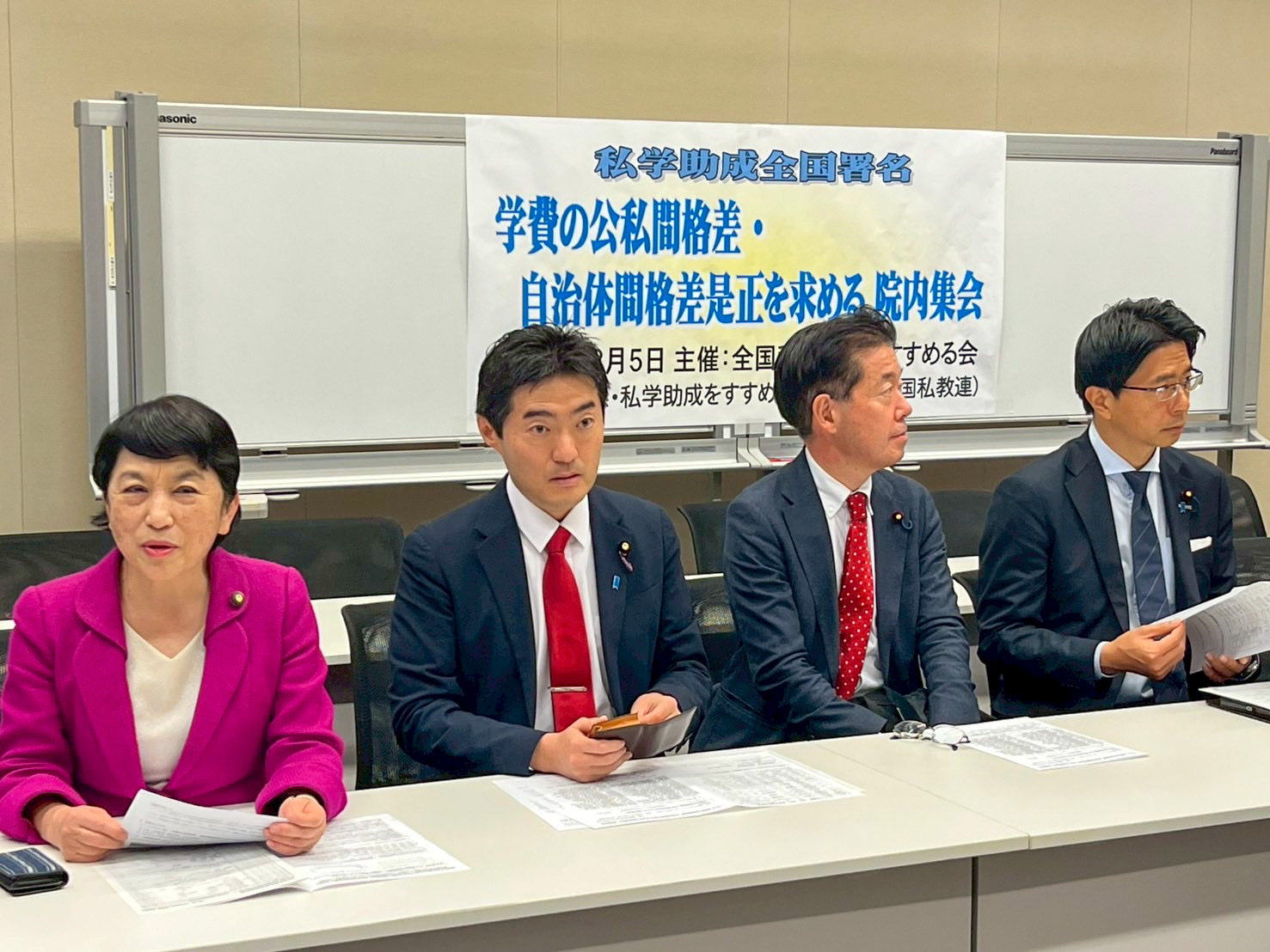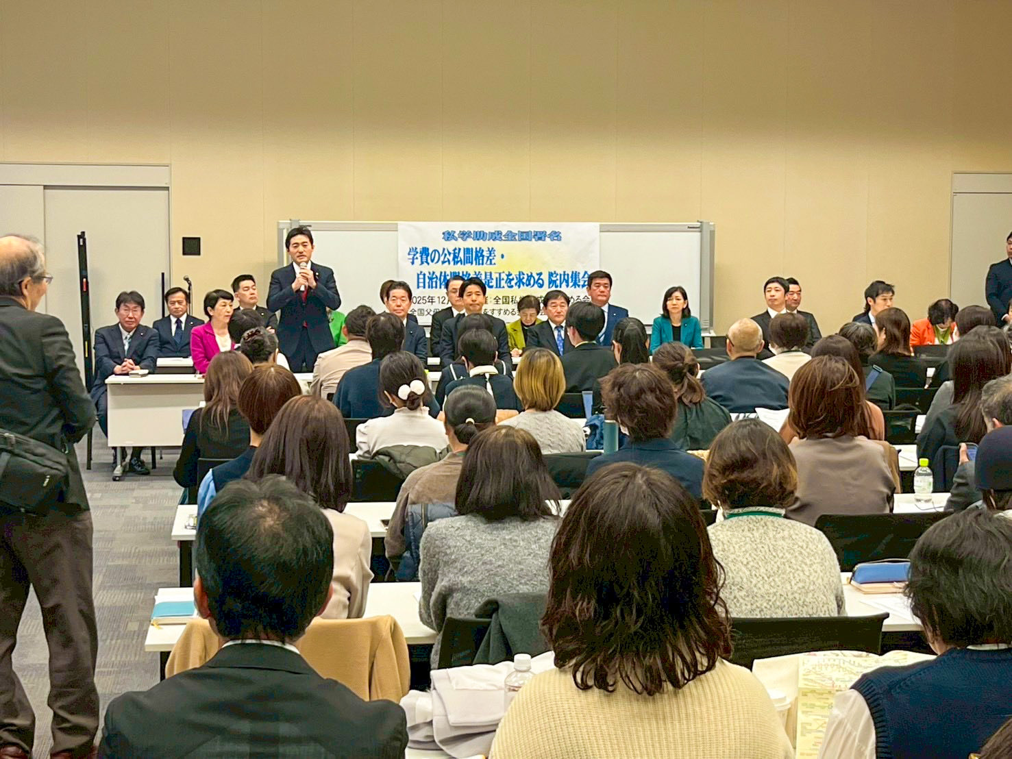 超党派の国会内集会に出席し、学費の公私間格差・自治体間格差の是正を強く訴えました。